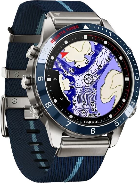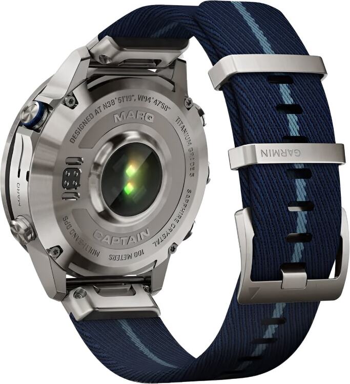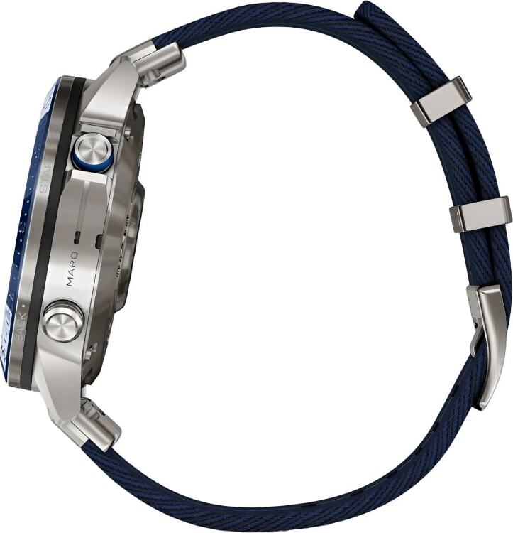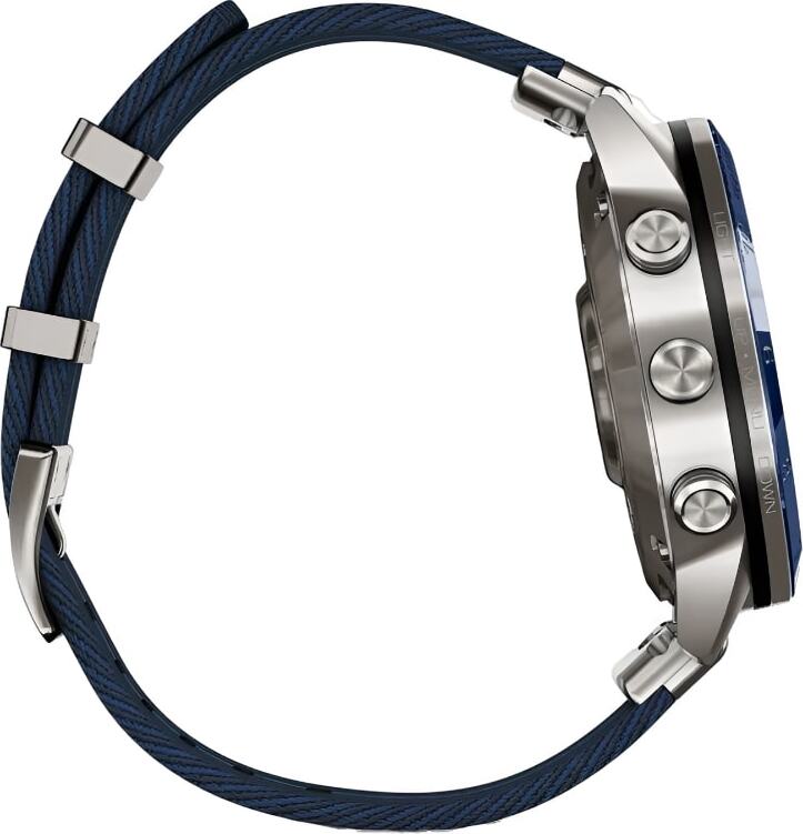 Часы выполнены в 46-миллиметровом корпусе из титана Grade 5 и оснащены сенсорным AMOLED-дисплеем, защищённым сапфировым стеклом. Премиальный ремешок из нейлона с жаккардовым плетением не только подчеркивает морской характер модели, но и обеспечивает комфорт в любых условиях — от яхты до причала.
