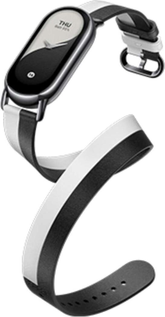 Двухцветный кожаный ремешок для фитнес-браслета Xiaomi Smart Band 8 Black-White